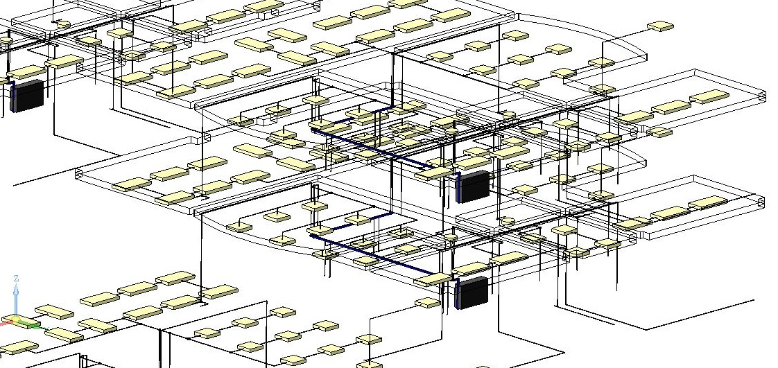 В состав решения включен конструктор кабельных трасс, позволяющий формировать сечения кабельных трасс с автоматическим определением взаимного расположения кабельных конструкций. Доступен просмотр в режиме реального времени 3D-представления кабельных трасс, потребителей и помещений.
