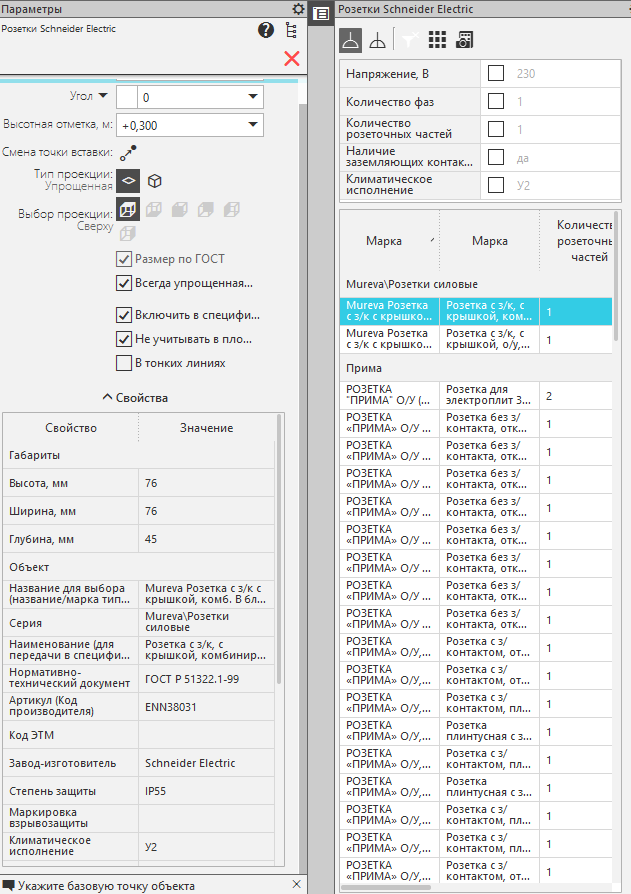 Приложение поставляется с каталогами элементов электрического оборудования. Каждый элемент в базе данных оборудования является параметрическим и содержит всю необходимую информацию, начиная с наименования и заканчивая 3D-моделью. Базы данных оборудования открыты для редактирования и пополнения, также есть возможность подключать IES-файлы базы данных светильников.