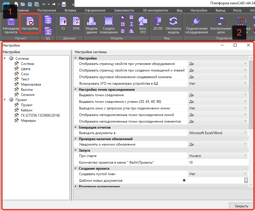 Вот, например, упростить и настроить изменения в проекте позволит команда «Настройки», где каждый пользователь, единожды настроив программу, получит удобство от выбранных параметров настроек для решений задач различной сложности.