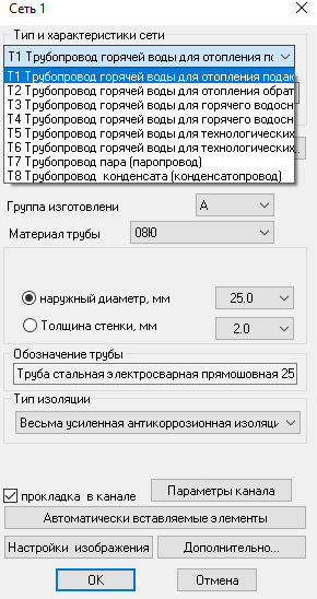 - Создание проекта тепловой сети: построение трассы, задание параметров труб и дополнительных элементов;
