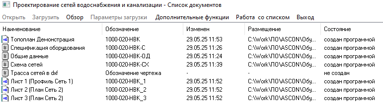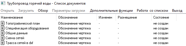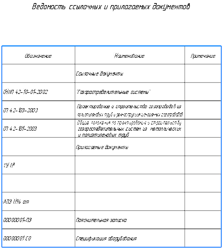 В результате работы системы создаются следующие проектные документы: чертежи планов и профилей газопроводов, типовые чертежи дополнительных элементов, спецификация оборудования, лист с общими данными и информация для составления сметы.