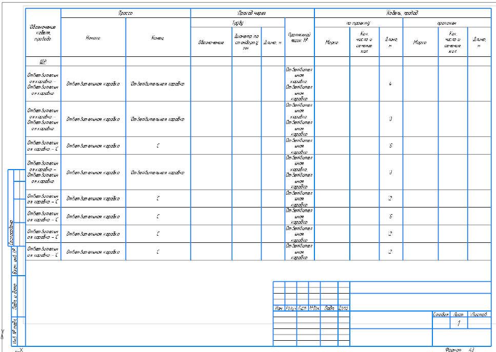 - кабельный журнал для прокладки методом трасс в соответствии с ГОСТ 21.613—2014 (по форме 7);